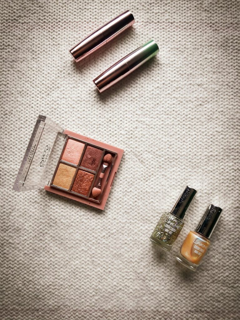 De e.l.f. Putty Blush in een warm peachy-oranje tint werkt hier goed voor. Of kies een bronzer met een warme, gouden gloed voor de wangen, zodat je er feestelijk uitziet zonder dat het verkleedpartij wordt. De Essence Sun Club Matte Bronzing Powder is hier een prima en goedkope keuze voor.